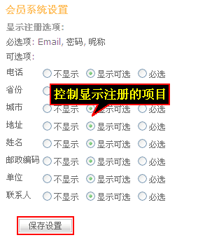 3、进入会员管理页面,点击“会员系统管理” 选择要显示的项目,选择完后点击“保存设置”。