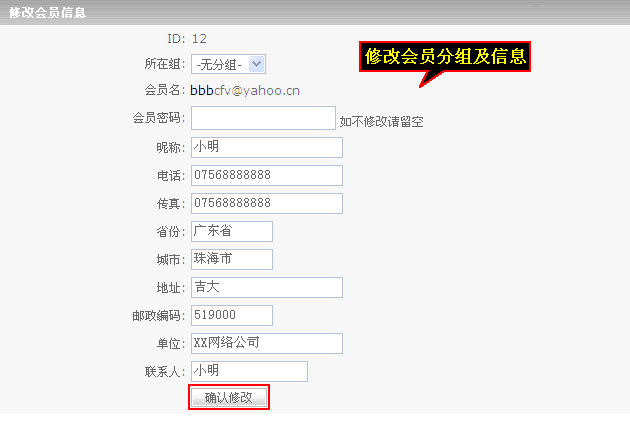 点击“删除”可以删除会员,点击“查看资料”可以对会员的资料进行修改及密码修改。